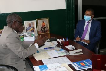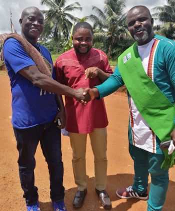 January 27, 2022-Monrovia-Liberia; Honorable Varney Sirleaf has bestow traditional honors on members of a visiting delegation from the United Nations Alliance for Sustainable Development Goals (UNASDG) and INTEREKO at his office in Monrovia.