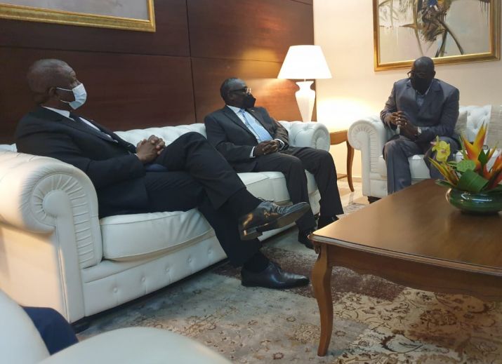 January 27, 2022-Monrovia-Liberia; Honorable Varney Sirleaf has bestow traditional honors on members of a visiting delegation from the United Nations Alliance for Sustainable Development Goals (UNASDG) and INTEREKO at his office in Monrovia.